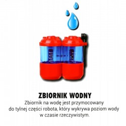 Aby uruchomić robota trzeba nacisnąć przycisk START. Robot sam poprosi o uzupełnienie ogniw zwykłą wodą z kranu i można zaczynać zabawę.