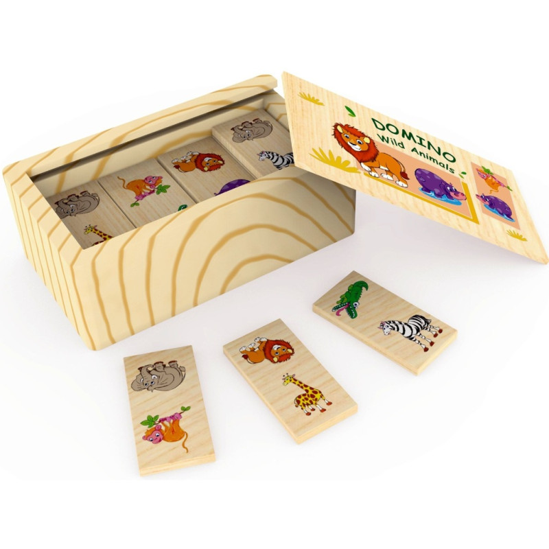 Dopasujcie wszystkie elementy i poznajcie wszystkie dzikie zwierzęta. Zamiast tradycyjnych kropek, połówki kostek oznaczone są kolorowymi obrazkami ze zwierzątkami. W takie domino może grać nawet dziecko, które jeszcze nie umie liczyć. To znakomita możliwość, by przez zabawę poznało matematyczny porządek. Wspólna gra w domino wzmacnia więzi i rozwija relacje społeczne.