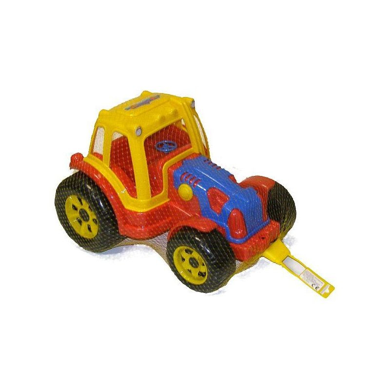 Duży traktor wykonany z dobrej jakości tworzywa. Traktor posiada ruchome elementy oraz duże koła z wyraźnie zaznaczonym bieżnikiem. Pojazd posiada otwartą kabinę bez szybek oraz zaczep z przodu kabiny na sznurek. Produkt występuje w kilku wariantach kolorystycznych(sprzedawany oddzielnie).