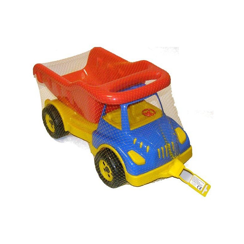 Duża wywrotka, wykonana z dobrej jakości tworzywa, posiada ruchome elementy oraz duże koła z wyraźnie zaznaczonym bieżnikiem. Pojazd posiada otwartą kabinę bez szybek oraz zaczep z przodu kabiny na sznurek.