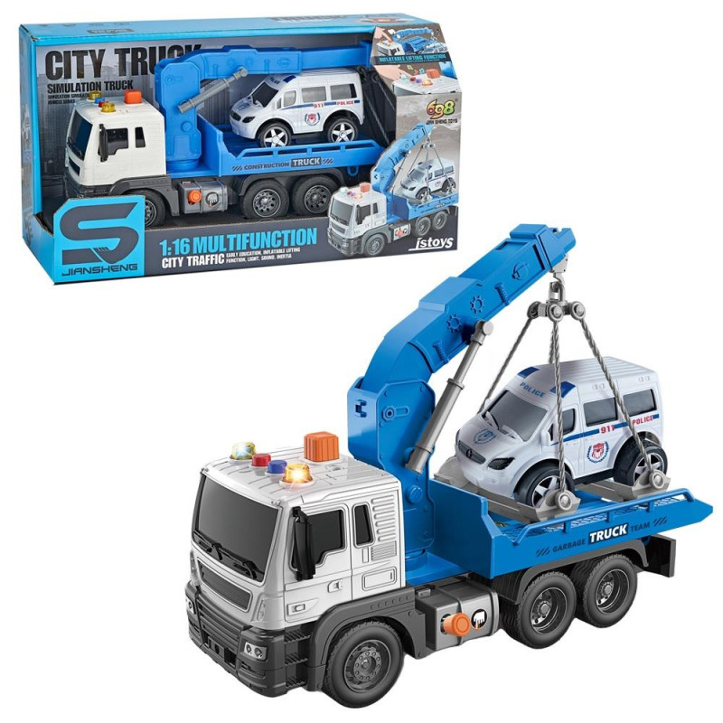 Super auto z dźwigiem i samochodem, posiada ruchome części podnoszone i opuszczane za pomocą przycisków. Efekty dźwiękowe i świetlne, zachwycą dzieciaki!