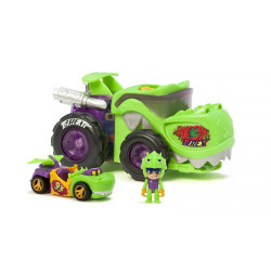 Super pojazdy Mega Wheels, dzięki któremu możesz wziąć udział w niesamowitych wyścigach. Posiada potężne koła i przód pojazdu (w kształcie paszczy dinozaura) utorują drogę do mety. Kierowcą T-Rexa jest kierowca o imieniu Fasteratops, dodatkowo z tyłu Mega Wheels znajduje się specjalna skrytka na akcesorium kierowcy. Włóż auto T-Racer do paszczy drapieżnika, naciśnij przycisk i rozpocznij wyścig z ogromną prędkością! Niech wygra najszybszy i najbardziej nieokiełznany pojazd!