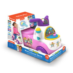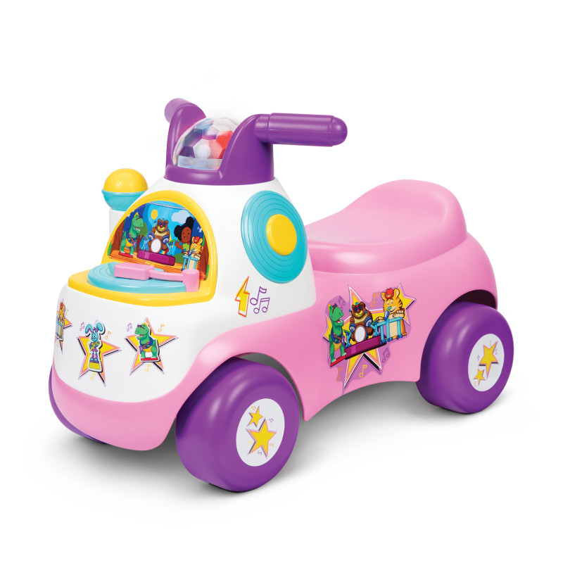 Jeździk, który ma wiele funkcji przeznaczony jest dla dzieci o wadze nieprzekraczającej 20kg. Dziecko może na nim siedzieć i poruszać się, odpychając się nóżkami. Z przodu jeździka znajduje się przezroczysta kula z kolorowymi efektami świetlnymi działającymi pod wpływem drgań. Autko wyposażone jest w gramofon grający melodyjki, działający mikrofon odtwarzający nagrane dźwięki z efektem echa oraz talerz do miksowania. Jeździk rozwija umiejętności, wyobraźnię, ćwiczy koordynację ruchową dziecka. Pojazd gra wesołe melodie, aby je uruchomić trzeba ruszyć ramieniem gramofonu z przodu pojazdu. Szerokie koła zapewniają, stabilność maluchom. Żywe kolory oraz radosne obrazki przyciągną uwagę dziecka zachęcając do podejmowania prób samodzielnego poruszania się po domu.
