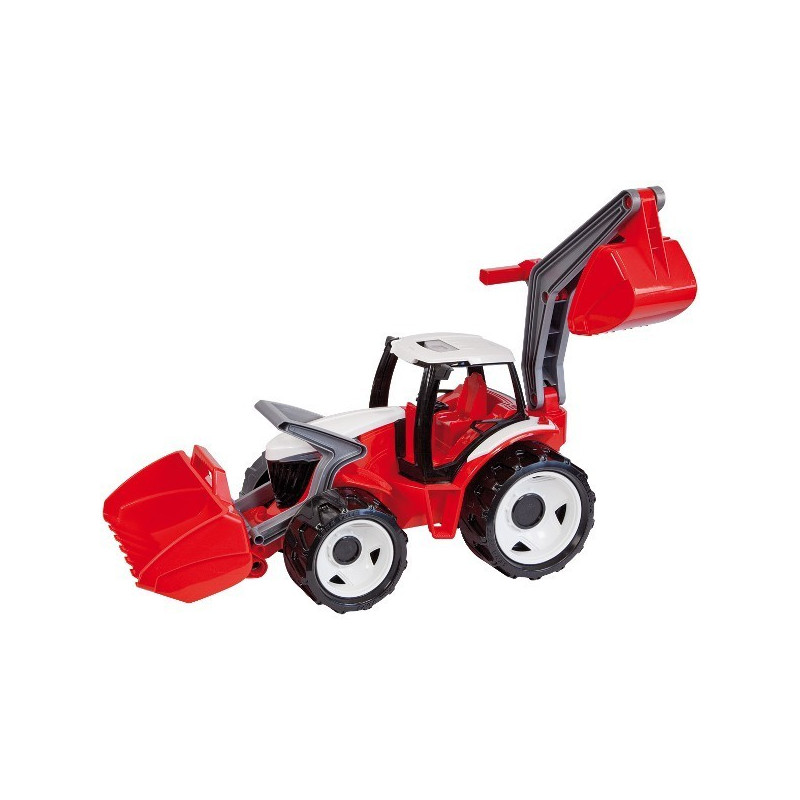 Ciągnik z łyżką do ładowania, wykonany jest z wysokiej jakości plastiku, spełniającego normy Europejskie. Pojazd posiada 2 mniejsze koła z przodu i dwa większe z tyłu. Posiada podnoszone ramię z przodu z ruchomą łyżką ładującą oraz ładowarkę z tyłu.