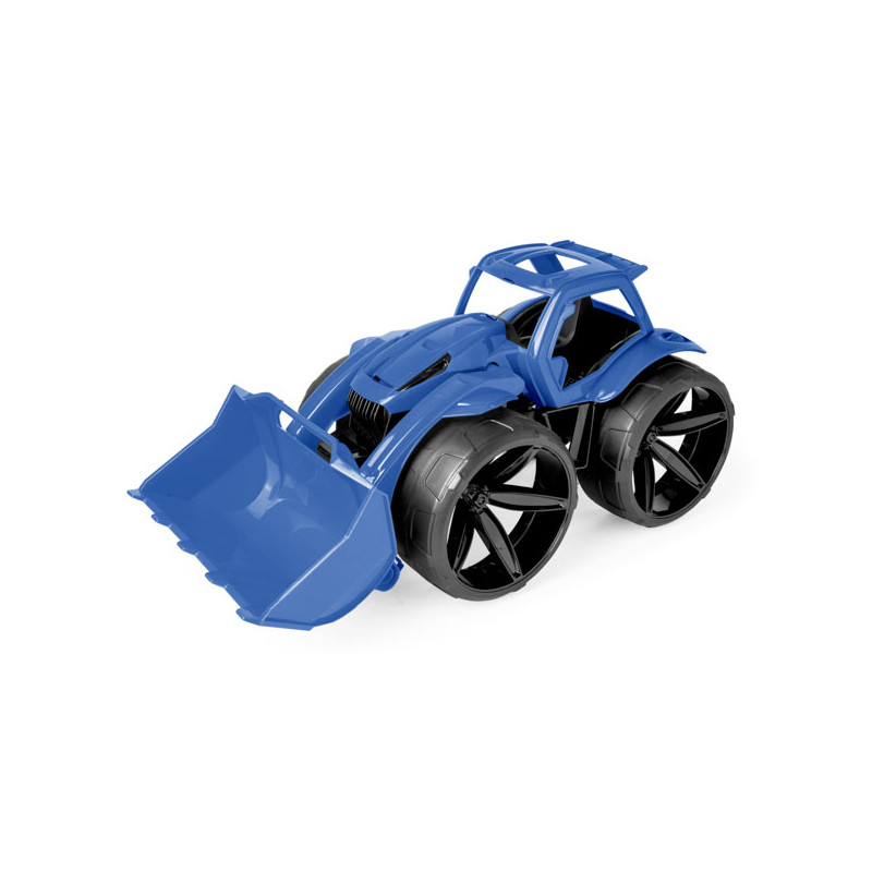 Nowa seria nowoczesnych pojazdów. Maximus spychacz w wyrazistym granatowym kolorze nie tylko przyciąga wzrok swoim śmiałym wyglądem, ale także gwarantuje wysoką jakość zabawy właściwą dla produktów premium. Z dużymi matowymi kołami, ruchomym ramieniem i łyżką spychacza, zapewnia realistyczną i kreatywną zabawę w domu, piaskownicy czy ogrodzie. Odporny na warunki atmosferyczne materiał gwarantuje długotrwałą zabawę, a 68 cm długości pojazdu zapewnia imponujący wygląd. Traktor posiada ruchome elementy, przednią łyżkę można opuszczać i podnosić w górę lub w dół z możliwością zablokowania łyżki w najwyższej pozycji - łyżka nie opada samoczynnie, dzięki czemu dziecko może spokojnie jeździć traktorem. Sama łyżka ma możliwość nabierania i wysypywania poruszając się w górę i w dół - możliwością zablokowania w dwóch pozycjach. Sterowanie łyżką ułatwia uchwyt na górze łyżki.
