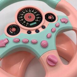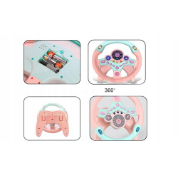 Kierownica posiada solidne przyssawki, które umożliwiają łatwe i stabilne przymocowanie do dowolnej płaskiej powierzchni. Kolor przyciąga uwagę i zachęca do zabawy, a intuicyjny układ przycisków pozwala na naukę i rozwijanie umiejętności motorycznych.