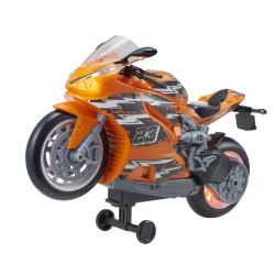Motocykl wyposażony został w realistyczne dźwięki oraz światełka, a także funkcję jazdy na jednym kole.