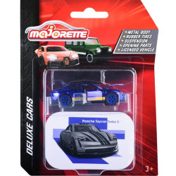 Majorette Deluxe Cars to seria luksusowych samochodów na licencji znanych marek: Bugatti, Porsche, Land Rover, Audi, Nissan. Pojazdy z metalowym nadwoziem, gumowymi oponami, amortyzującym zawieszeniem, posiadają dwa otwierane elementy, takie jak np. drzwi czy też bagażnik. Ekskluzywne modele posiadają metalową puszkę kolekcjonerską. Każdy szczegółowy miniaturowy samochód ma około 7,5 cm długości. Metalowe podwozie, metalowy korpus, zawieszenie, wolnobieg i gumowe opony zamieniają małe samochody w świetne zabawki i jednocześnie prawdziwe przedmioty kolekcjonerskie. Czy to dla ambitnych kolekcjonerów modeli samochodów, czy dla chłopców i dziewczynek od 3 lat - realistyczne i licencjonowane modele to idealny prezent dla młodych i starszych fanów samochodów. Majorette jest kultową francuską marką popularną na całym świecie wśród fanów samochodów. Przez dekady te niewielkie 7,5 centymetrowe samochodziki zyskały międzynarodową sławę. Dla wielu pokoleń stały się obiektami kolekcjonerskimi lub po prostu przedmiotami do wielogodzinnej zabawy. Od lat Majorette współpracuje z przedstawicielami branży motoryzacyjnej, co pozwoliło udoskonalić i tak bardzo realistycznie odwzorowywać modele pojazdów. Od samochodów osobowych, komercyjnych i budowlanych, aż po samochody wyścigowe oraz zestawy do zabawy - różnorodność sprawia, że każdy znajdzie coś dla siebie.
