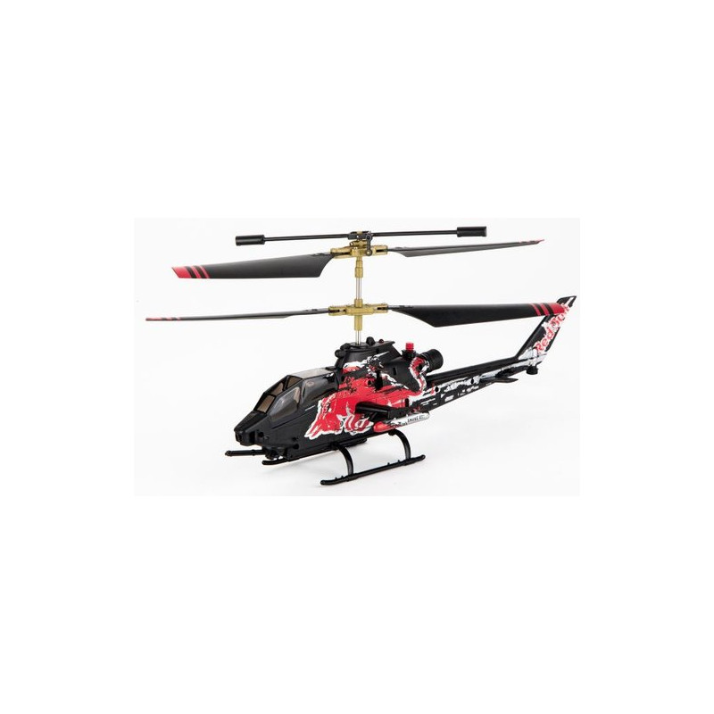 TAH-1F jest uważany za jeden z pierwszych prawdziwych śmigłowców szturmowych. Do połowy lat 60. znane były tylko normalne śmigłowce transportowe które w razie potrzeby były uzbrojone. Ale amerykański producent Bell Helicopter zmienił wszystko dzięki temu modelowi. W charakterystycznym kolorze Red Bulla śmigłowiec jest obecnie popularnym towarzyszem latania dla Flying Bulls aby przyciągnąć uwagę na pokazach lotniczych. Okaz jest również popularnym wsparciem w filmach i telewizji. Ten helikopter to po prostu zabawa! Śmigłowiec bojowy w małej wersji. Oczywiście nikt nie może nic zrobić prywatnie z tak legendarnym obiektem latającym w oryginalnych rozmiarach. Ale w wersji RC jest to dokładnie odpowiedni model dla fanów helikopterów i entuzjastów lotnictwa. Śmigłowiec RC jest dostarczany w stanie gotowym do pracy i może uzyskać czas lotu do 5 minut. Czas ładowania wynosi około 60 minut. Dzięki oryginalnej licencji Red Bulla samolot nie jest wizualnie w żaden sposób gorszy od swojego pierwowzoru. Ponadto śmigłowiec zdobywa punkty dzięki wysokiej jakości współosiowemu sterowaniu wirnikiem i systemowi żyroskopowemu dzięki któremu zapewniona jest stabilna postawa w locie. Możesz również polegać na automatycznym asystencie wysokości w każdej sytuacji który zapewnia łatwą obsługę dzięki funkcji automatycznego startu i lądowania. Dzięki technologii radiowej 2.4 GHz do 16 maszyn może latać jednocześnie i poruszać się z tą częstotliwością bez zakłóceń. We wszystkich innych przypadkach interweniuje funkcja antykolizyjna. Cobra TAH-1F z wbudowanym akumulatorem 1 x 3,7V 300mAh 1S LiPo jest wyposażony w ergonomiczny 3-kanałowy kontroler usb do ładowania i baterie do kontrolera.