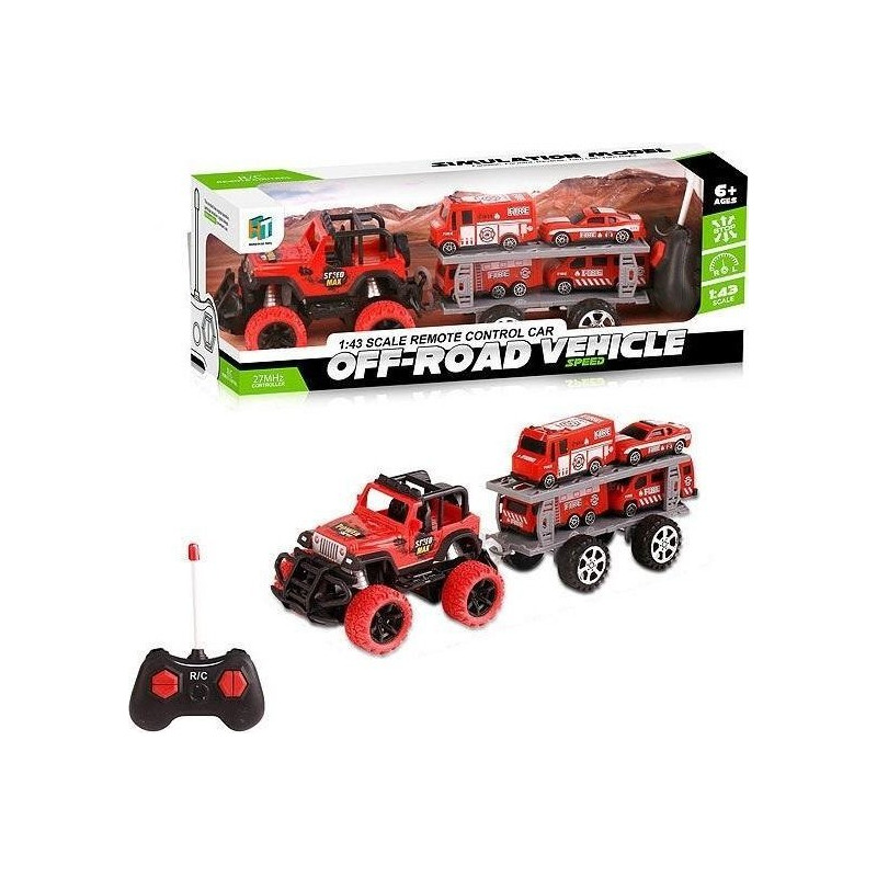 Auto strażackie na dużych kołach z przyczepą w zestawie 5 aut!