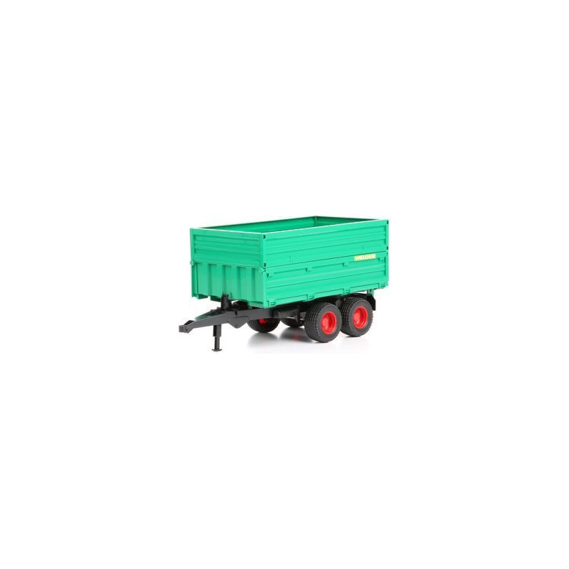 Przyczepa dwuosiowa firmy Bruder. Przyczepa pasuje do wszystkich ciągników z serii. Seria Profi cechuje się wykonaniem z wysokiej jakości plastiku z ruchomymi elementami. Zabawka edukacyjna, której głównymi cechami są: zdejmowalne podwyższenie burt rozkładane 3 dolne burty wysuwana podpora miękkie, gumowe opony z bieżnikiem podnoszona skrzynia załadowcza z uchylną klapą tylny sprzęg umożliwiający doczepienie dodatkowego sprzętu
