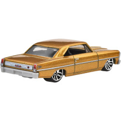 To 1966 Chevy Nova w kolorze złotym. Auto zostało odwzorowane w skali 1:64, z dbałością o każdy detal.