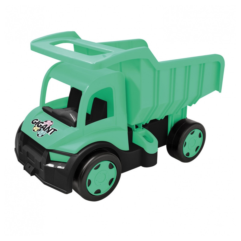 Gigant Wywrotka w kolorze miętowym to fantastyczny, duży samochód o długości 55 cm. Pojazd posiada zaczep z przodu (możliwość zamontowania sznurka, linki do ciągnięcia) i z tyłu. Ogromna wytrzymałość (nośność do 150 kg) gwarantuje wspaniałą zabawę. Solidna i trwała, wielofunkcyjna konstrukcja rozpali serca wszystkich małych wielbicieli pojazdów ciężarowych i będzie im służyć latami. Wywrotka posiada otwierany kiper z wygodnym uchwytem, na którym dziecko może przewozić, co tylko zechce. Dzieciaki pokochają możliwość ładowania, rozładowywania i przewożenia ulubionych zabawek, a także zwariowanej jazdy w domu i ogrodzie. Zabawa Wywrotką Gigant Truck pobudzi wyobraźnię najmłodszych, wspiera umiejętności manualne i koordynację ruchową dziecka. Zabawka wykonana jest z najwyższej jakości materiałów bezpiecznych dla dzieci. Nadaje się do zabawy zarówno w domu, jak i na świeżym powietrzu.