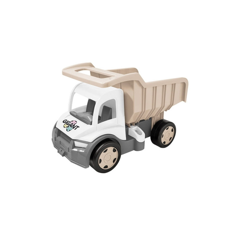 Gigant Wywrotka w subtelnych kolorach jasnego beżu, szarości i bieli to imponujący pojazd o długości 55 cm, idealny dla małych wielbicieli ciężarówek. Jego przemyślany design sprawia, że jest nie tylko zabawką, ale także stylową dekoracją pokoju dziecięcego.