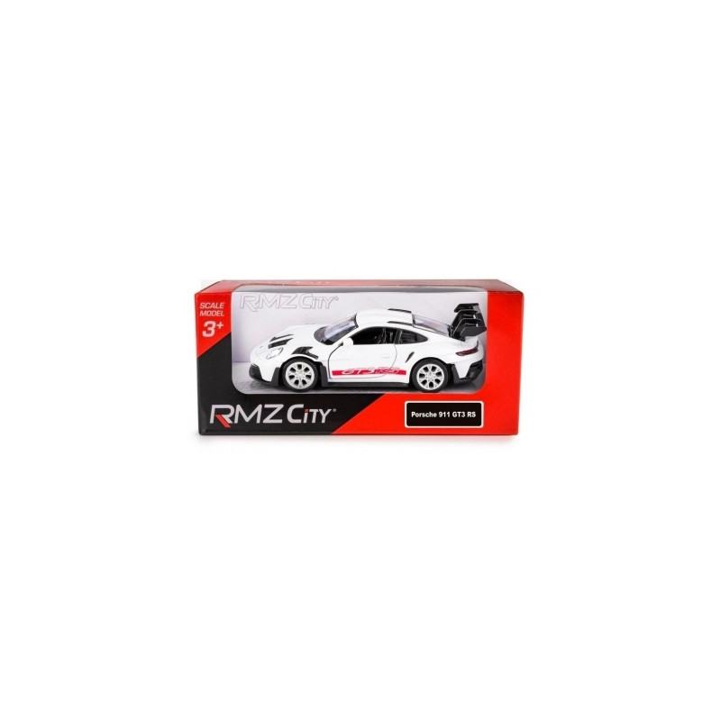 Metalowy model sportowego samochodu Porsche 911 GT3 RS z serii RMZ City, przeznaczony głównie jako zabawka lub kolekcjonerski model dla dzieci i miłośników motoryzacji. Produkt jest wiernym odwzorowaniem klasycznego auta sportowego w miniaturze, wykonanym z metalu z dodatkiem elementów plastikowych.
