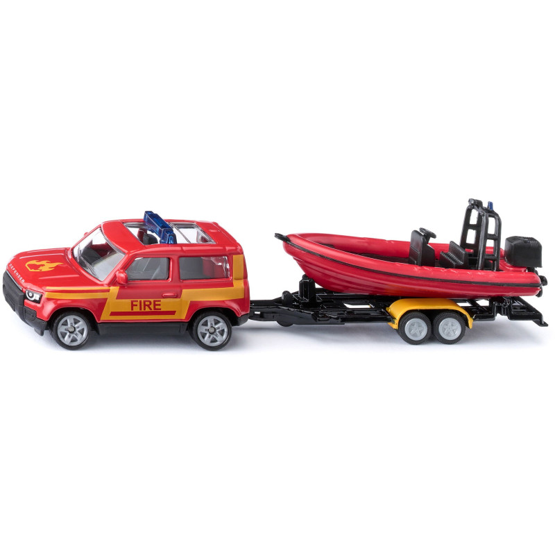 Super pojazd w wersji strażackiej z przyczepą i łodzią – przeznaczony przede wszystkim dla dzieci oraz kolekcjonerów. Model przedstawia terenowy pojazd Land Rover Defender holujący motorówkę na przyczepce, co pozwala na zabawę w „misję ratowania” zarówno na lądzie, jak i „na wodzie”.