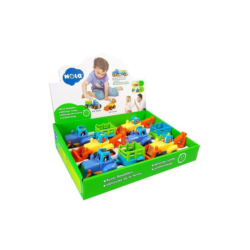 Kolorowy traktor z przyczepą to zabawka dla dzieci, która pozwala na odgrywanie scen z życia na wsi oraz zabawę w rolnika. Pojazd wykonany jest z wytrzymałego plastiku i posiada napęd frykcyjny oraz ruchome elementy, dzięki czemu zapewnia bardziej realistyczną zabawę. Zabawka występuje w różnych kolorach lub wersjach (np. traktor lub koparka) – wysyłanych losowo.