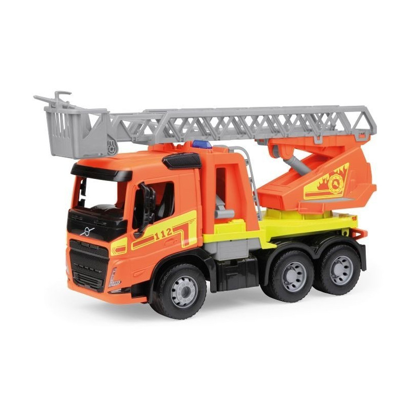Duży wóz strażacki inspirowany prawdziwym pojazdem ratowniczym Volvo FMX. Zabawka została wykonana z wytrzymałego tworzywa i wyposażona w realistyczne funkcje, które urozmaicają zabawę. Posiada obracaną i wysuwaną drabinę z koszem, zbiornik na wodę oraz ręczną pompkę, dzięki której można strzelać wodą podczas zabawy. Solidna konstrukcja ze stalowymi osiami sprawia, że pojazd nadaje się zarówno do zabawy w domu, jak i na zewnątrz, np. w ogrodzie lub piaskownicy. Produkt przeznaczony jest dla dzieci od 3 roku życia.