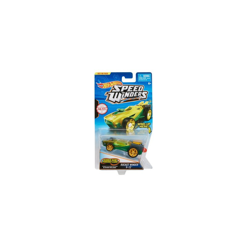Napędzane gumkami pojazdy Hot Wheels Autonakręciaki Track Stars! Rozpocznij zabawę z kolekcją autonakręciaków Track Starsw skali 1:64, wyposażając je w napęd przy użyciu gumki. Użyj tylnego pokrętła, aby nakręcić znajdującą się w środku pojazdu gumkę i zapewnić mu odpowiednią moc i prędkość! Te napędzane gumkami pojazdy są w stanie przejechać 5 pętli bez wykorzystania wyrzutni i przyspieszaczy!