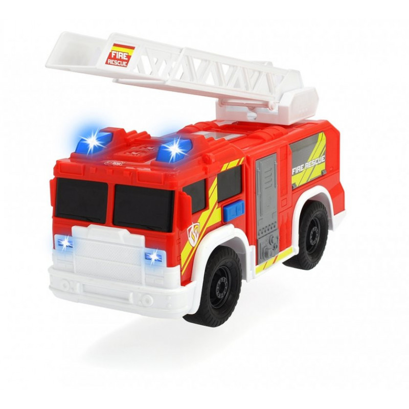 Straż pożarna Scania firmy Simba Dickie. Samochód bez napędu, wyposażony w światło i dźwięki i ruchome elementy, wyciąganą drabinę. Całość wykonana z wysokiej jakości materiałów. Wiek 3+
