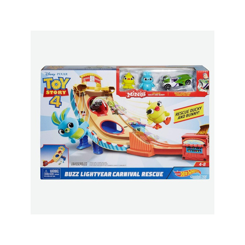 Dzieci mogą pomóc swojemu ulubionemu Space Rangerowi, Buzzowi Lightyearowi - tutaj jako samochód Hot Wheels - uwolnij swoich przyjaciół, Ducky'ego i Bunny, od bycia uwięzionymi jako karnawałowe nagrody! Nie będzie łatwo ich uratować, ponieważ jeśli nie wskoczy na właściwy pierścień, Buzz też może stać się nagrodą!