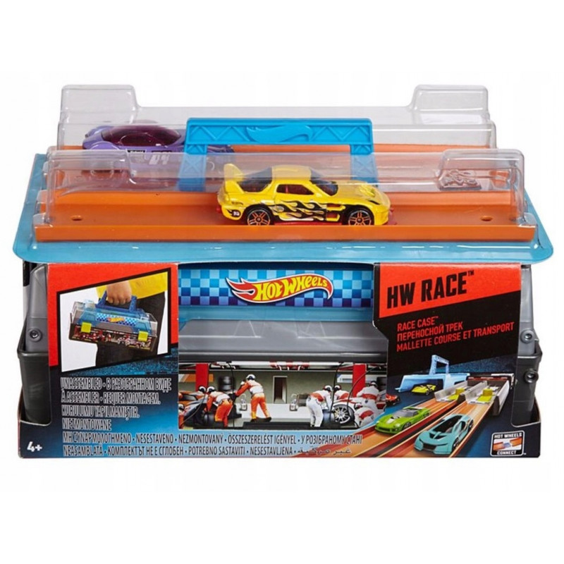 Hot Wheels Wyścigowy zestaw – Skrzynka + 2 Autka CFC81 od firmy Mattel zawiera: