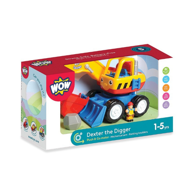 Koparka Dexter jest świetną zabawką złożoną z wielu elementów. Wykonany z wysokiej jakości plastiku. Koparka ma napęd typu - pchnij i jedź. Koparko - ładowarka to duża zabawka z ruchomym ramieniem koparki, zakończonym łychą. Koparka ma przycisk, który otwiera pokrywę silnika. Zabawki z serii WOW są odpowiednie dla dzieci od 10. miesiąca życia! Będą doskonałym prezentem na roczek, ale sprawdzą się dla 2 latka, 3 latka, 4 latka, a także zainteresują pięciolatka.