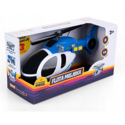 Helikopter z serii midi z ręcznie obracanymi śmigłami. Zabawka posiada z boku przyciski aktywujące realistyczne odgłosy oraz światełka.