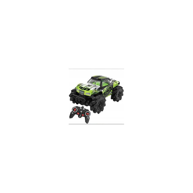 Wspaniała duża zielona terenówka zdalnie sterowana. Włącz samochód, ustaw go w jednej linii z pilotem. Autko posiada tryb jazdy bokiem, dzięki czemu można driftować. Użyj dwóch dźwigni na pilocie, aby sterować autem - do przodu lub do tyłu.