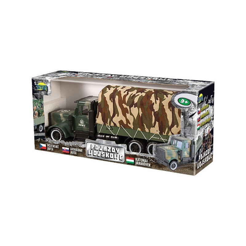Dla każdego fana militariów i pojazdów wojskowych. Duża ciężarówka wojskowa z napędem ciernym (friction). Pobudzi wyobraźnię dziecka do kreatywnej zabawy. Wiek 3+.