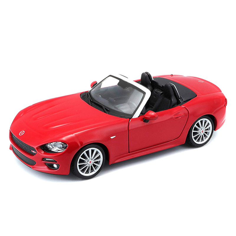 Burago Fiat 124 Spider. Zabawka posiada otwierane drzwi. Idealnie odzwierciedla rzeczywisty wygląd pojazdu.