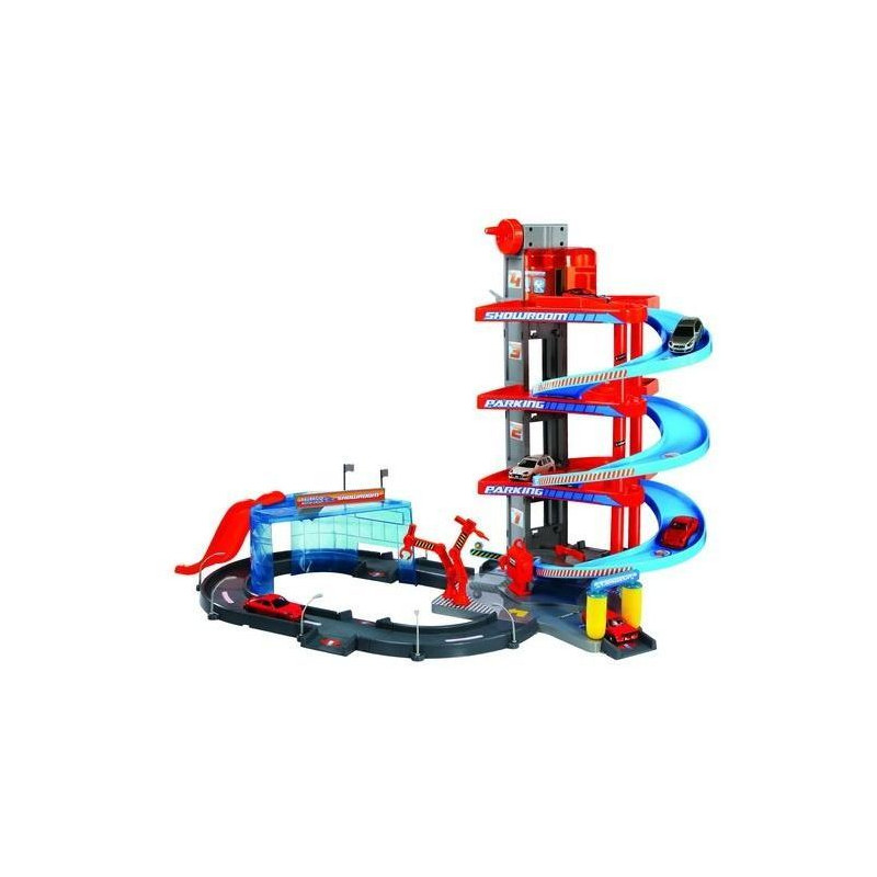 Burago Street Fire Mega. Zestaw zawiera dwa samochody w skali 1:43 , 4 poziomowy parking ze zjazdem oraz obrotową windą