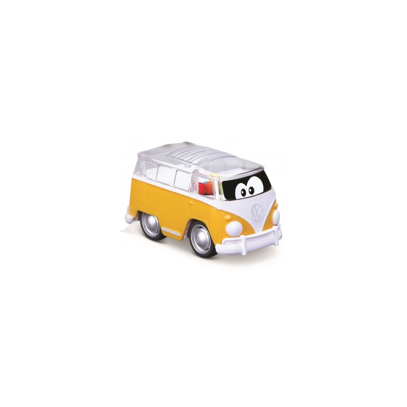 Burago VW Samba żółty. Autko z napędem. W środku ma kolorowe kuleczki które podskakują, kiedy pojazd jeździ,