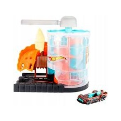 Zakręcona Lodziarnia ma przezroczystą windę - ustaw autko na dole przy wjeździe do środka i zacznij kręcić srebrną łyżką. Samochód zacznie wędrować w górę, dzięki zamontowanej windzie; gdy pojazd znajdzie się na szczycie, będzie mógł wyjechać pomarańczowym torem w dół, mijając tym samym tabliczkę z plastikowym lodem. Zestaw można połączyć z innymi torami od Hot Wheels. W zestawie z autkiem. Zestaw pobudzi dziecko do kreatywnej zabawy. Wiek 4+.
