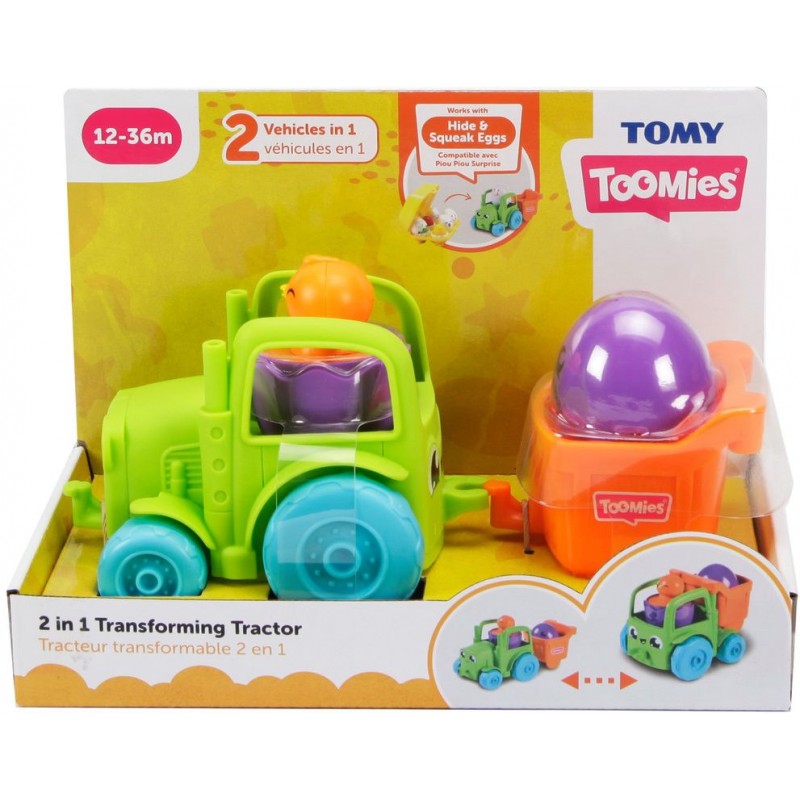 Traktorek, który można przekształcić w wywrotkę w mgnieniu oka. Super zabawka zarówno dla mniejszych jak i troszkę większych dzieci. Za kierownicą znajduje się mały kurczaczek - który po naciśnięciu wydaje wesołe dźwięki, a na przyczepie umieszczone zostało fioletowe jajeczko.