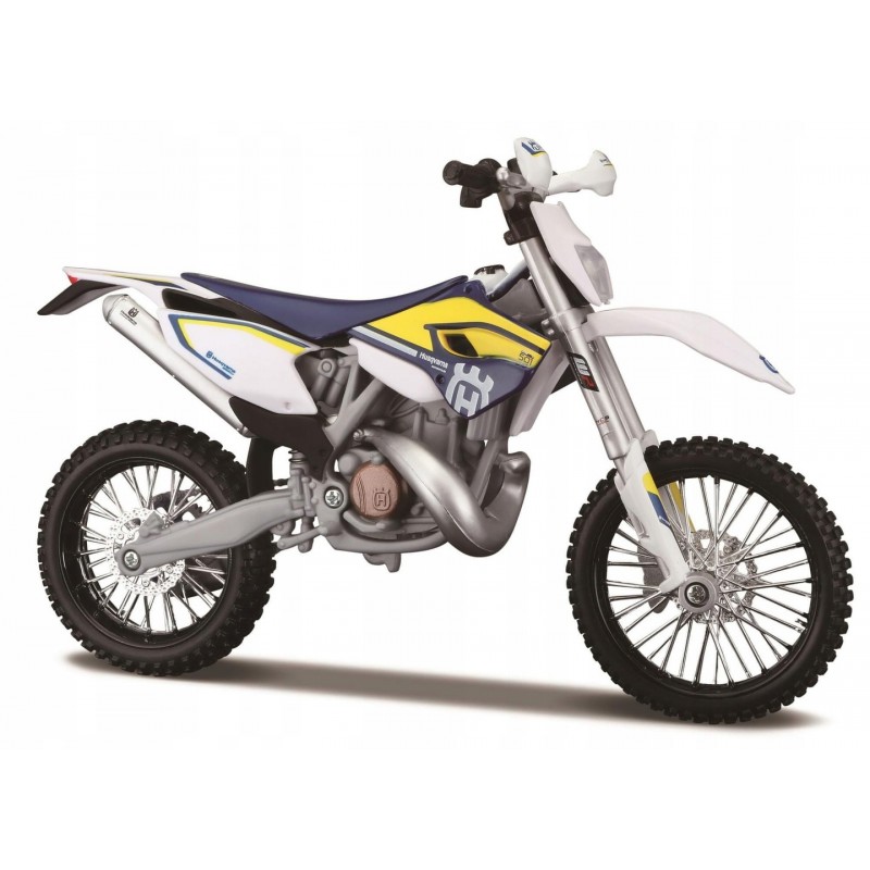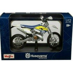 Model motocykla marki Huqsvarna z ruchomymi elementami : kierownicą, kołami, tylnym wahaczem, stopką. Idealnie odwzorowany. Skala 1:12. Sprawdzi się jako zabawka lub element kolekcji. Motocykl jest ładnie zapakowany.
