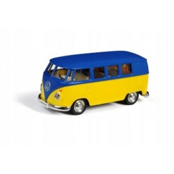 VW Samba Bus niebiesko-żółty - metalowy pojazd z elementami plastikowymi, dzięki zastosowaniu materiałów wysokiej jakości zapewnia niesamowite odczucia. Nadwozie i lakier wykonane z najwyższą dokładnością i starannością. Przez otwierane drzwi każdy może zajrzeć do wnętrza samochodu. Zabawa autami rozwija wyobraźnię.