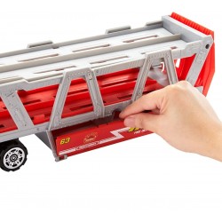 -Transporter ma w zestawie jeden dodatkowy pojazd: płomienną ciężarówkę w skali 1:64 i może pomieścić kolejne 15 samochodzików (sprzedawanych oddzielnie).