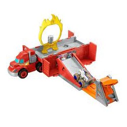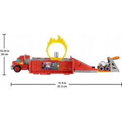 Odtwarzaj pełne emocji wyścigi i ewolucje z serialu Nickelodeon „Blaze i megamaszyny” dzięki temu zestawowi 2w1 Kaskaderska ciężarówka z funkcją transformacji. Ta niesamowita zabawka przekształca się z dużej ciężarówki do popychania w świetny zestaw kaskaderski z rampą do skoków, pierścieniem „ognia” i warsztatem. Naciśnij wyrzutnię, aby wysłać pojazd Darington przez „płonącą” obręcz i trafić w beczkę! BUM! Zmieniaj pozycję rampy i pierścienia, aby wymyślać jeszcze ciekawsze kaskaderskie wyzwania. W zestawie 1 ciężarówka z ruchomą rampą, 1 metalowy pojazd, 1 pierścień „ognia” i 1 beczka