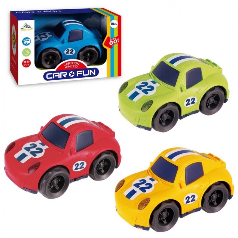 Samochodzik wyścigowy wykonany z tworzywa sztucznego. Posiada wolny napęd. W każdym pojeździe znajdują się baterie testowe. Samochodzik występuje w czterech wersjach kolorystycznych żółty, zielony, niebieski i czerwony - wysyłanych losowo.