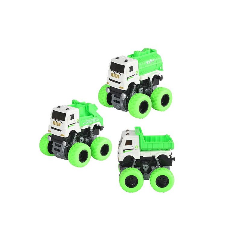 Monster Truck osiada duże koła. Po uderzeniu w przeszkodę przewraca się, a koła kręcą się w spektakularny sposób. Auto obraca się o 360 stopni. Ruchome elementy dodatkowo uatrakcyjniają zabawę.