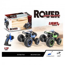 Terenowy samochód na ogromnych kołach zachwyci każdego miłośnika Off Roadu. Samochód wykonany w skali 1:20. Na przodzie pojazdu znajduje się reflektor, który dodatkowo uatrakcyjnia zabawę. Samochód idealnie sprawdzi się podczas akrobacji w domu jak i w trakcie pokonywania przeszkód znajdujących się na podwórku.