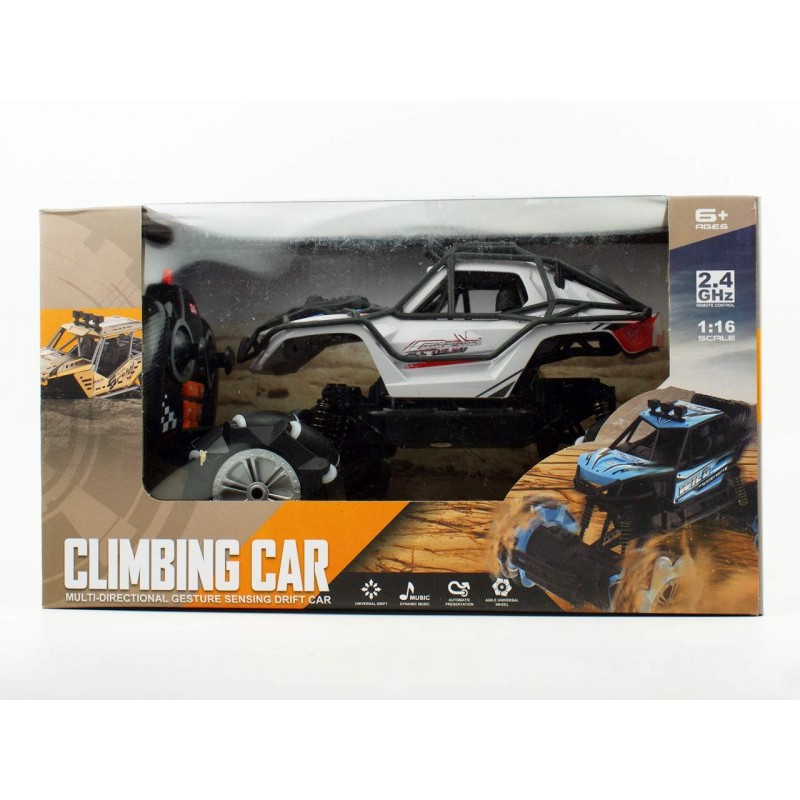 Terenowy samochód na ogromnych kołach zachwyci każdego miłośnika Off Roadu. Samochód wykonany w skali 1:16. Samochód idealnie sprawdzi się podczas akrobacji w domu jak i w trakcie pokonywania przeszkód znajdujących się na podwórku.