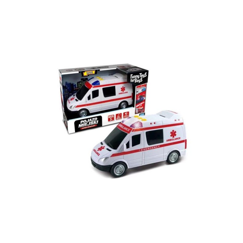 Ambulans z napędem frakcyjnym. Zabawka posiada efekty świetlne i dźwiękowe.