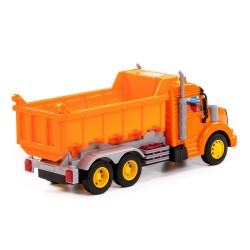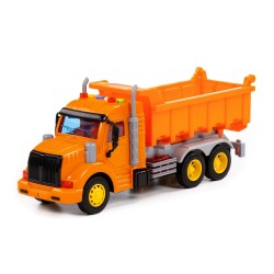 Super samochód - wywrotka pomarańczowa (ze światłem i dźwiękiem) wyposażona w szerokie koła połączone metalowymi osiami. Ich struktura nie jest gładka, co ułatwia jazdę po nierównych powierzchniach. Kabina kierowcy jest oszklona. Użyto w tym celu grubego, przezroczystego plastiku.