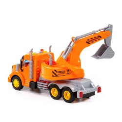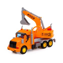 Samochód koparka pomarańczowa (ze światłem i dźwiękiem) wyposażona w szerokie koła połączone metalowymi osiami. Ich struktura nie jest gładka, co ułatwia jazdę po nierównych powierzchniach. Kabina kierowcy jest oszklona. Użyto w tym celu grubego, przezroczystego plastiku.