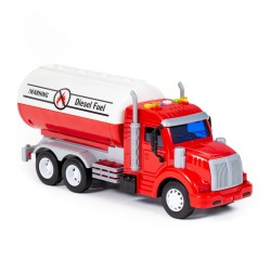 Samochód cysterna czerwona (ze światłem i dźwiękiem) wyposażona w szerokie koła połączone metalowymi osiami. Ich struktura nie jest gładka, co ułatwia jazdę po nierównych powierzchniach. Kabina kierowcy jest oszklona. Użyto w tym celu grubego, przezroczystego plastiku.