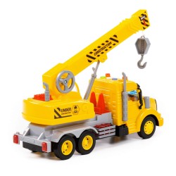 Samochód- auto dźwig żółty (ze światłem i dźwiękiem) wyposażony w szerokie koła połączone metalowymi osiami. Ich struktura nie jest gładka, co ułatwia jazdę po nierównych powierzchniach. Kabina kierowcy jest oszklona. Użyto w tym celu grubego, przezroczystego plastiku.