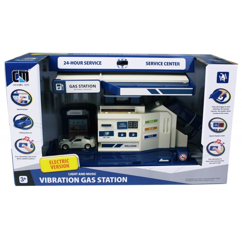 Ta wspaniała Stacja Benzynowa zachwyci każdego miłośnika motoryzacji. Wykonana z dbałością o najmniejsze szczegóły. Znajduje się w niej wszystko co potrzebne, aby zatankować samochód. Stacja została wyposażona w dystrybutor paliwa, parking na dachu, supermarket, podjazd. Zabawka posiada również samochodzik, który należy zatankować.