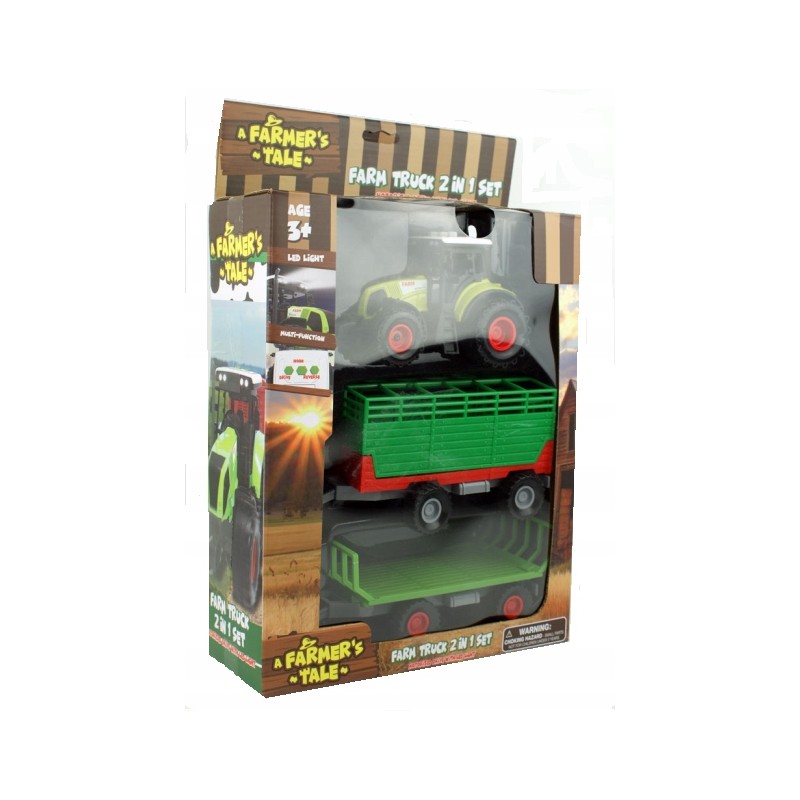 Super fajny traktor z dwoma przyczepami do zabawy. Posiada światła led. Wykonany z wysokiej jakości materiałów. Ucieszy każdego fana maszyn rolniczych. Wiek 3+.